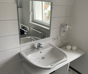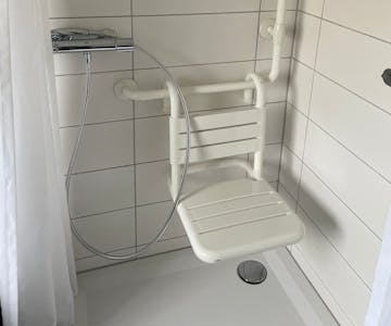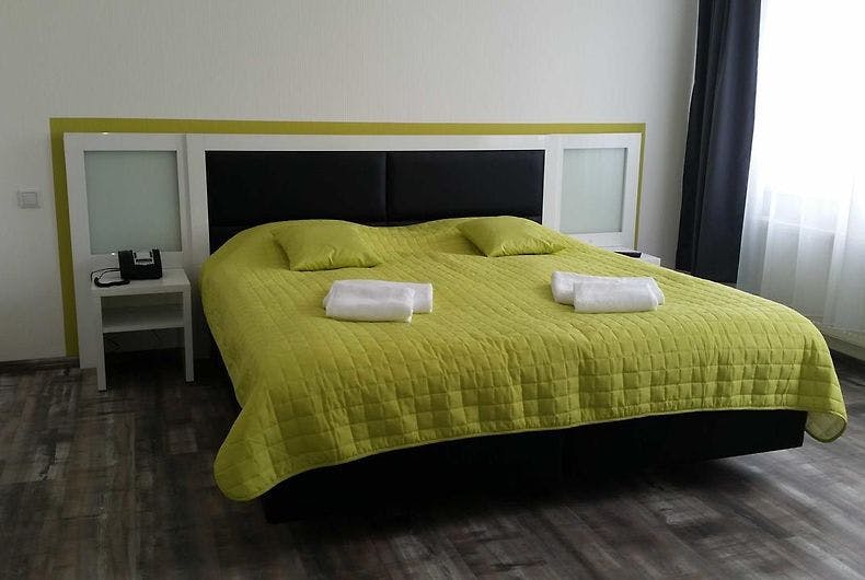 The design of the barrier-free double room is consistent with our other room categories. It is decorated in bright colors and features modern furnishings, including a comfortable double bed accessible from both sides.